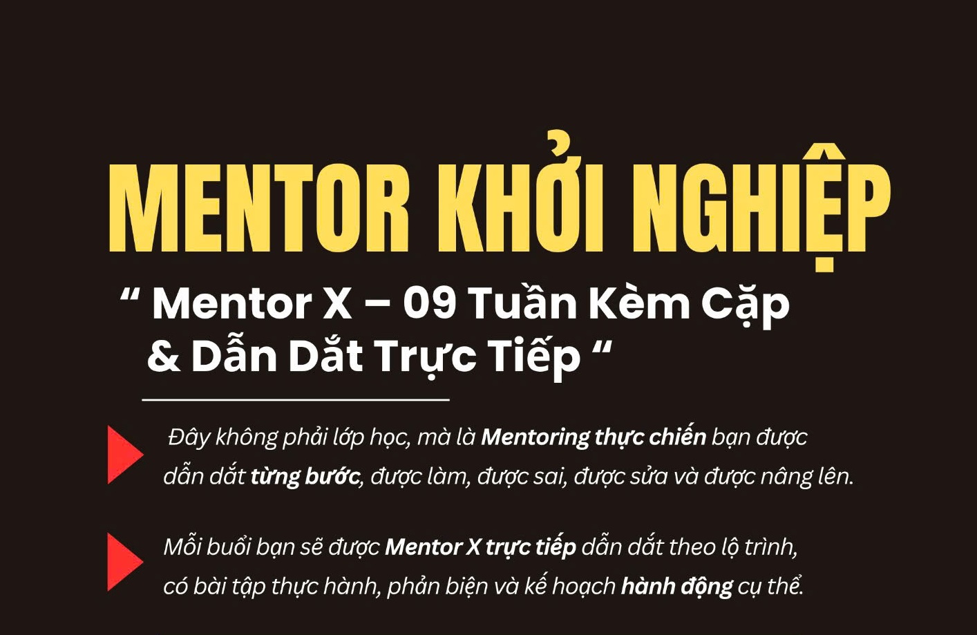 MỜI THAM GIA MENTOR KHỞI NGHIỆP (Mentor X – 09 Tuần Kèm Cặp & Dẫn Dắt Trực Tiếp) 1. GIỚI THIỆU CHƯƠNG TRÌNH Mentor X là chương trình kèm cặp trực tiếp 09 tuần, dành cho 02 nhóm đang trên …